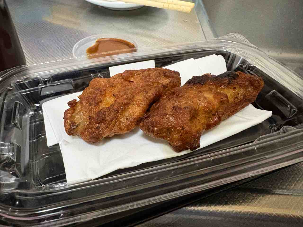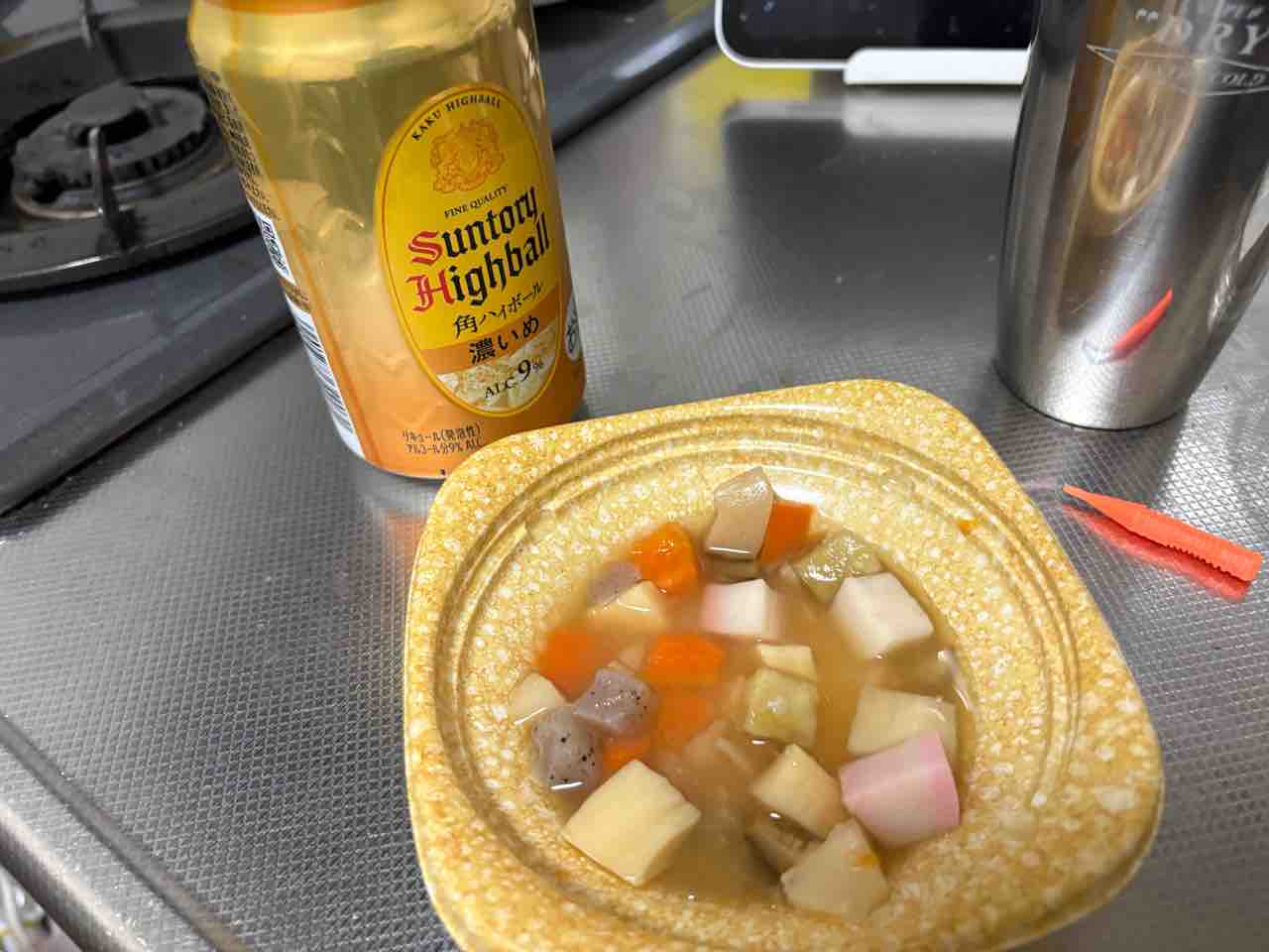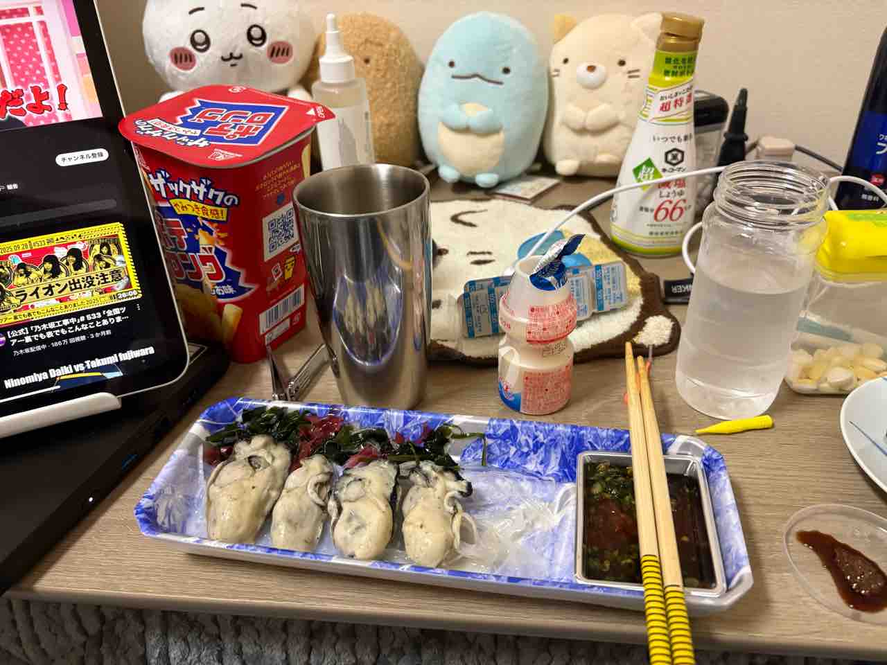 朝食はお決まりのカップ麺に刻みネギ追加の群馬から持ってきたチヂミの残り。
