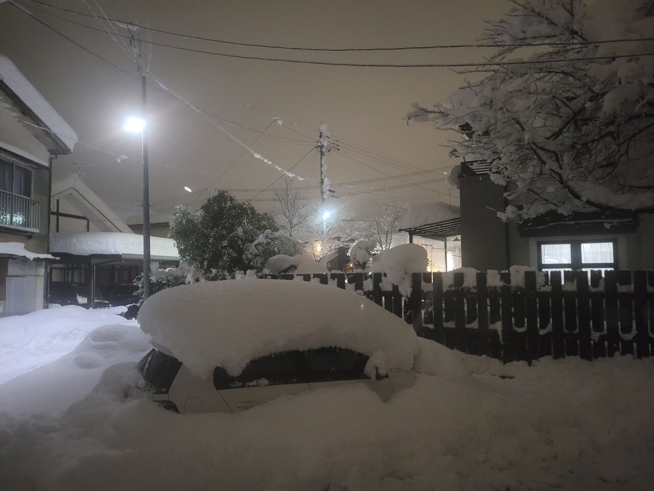 隣の人は昨日の夕方除雪して、夜中も除雪して、さっきも除雪して出ていった。