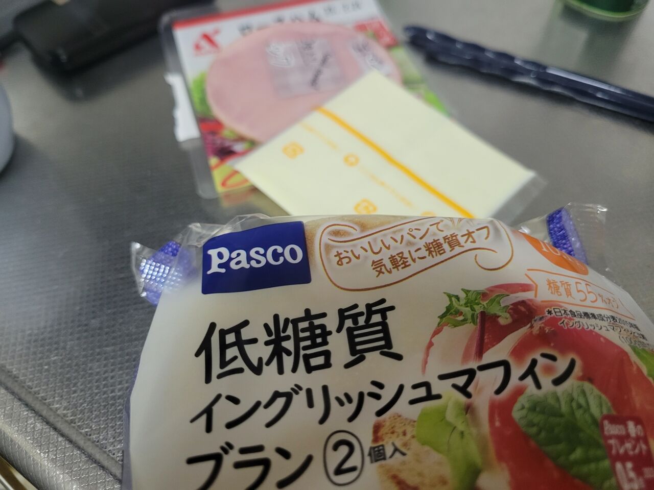 低糖質イングリッシュマフィンハムチーズとか食べてからローラー。
