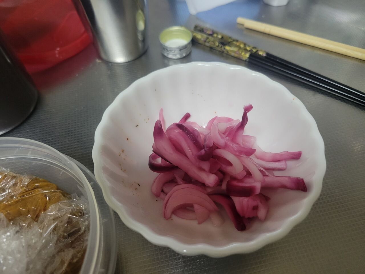 群馬から持ってきた新玉ねぎのピクルス。