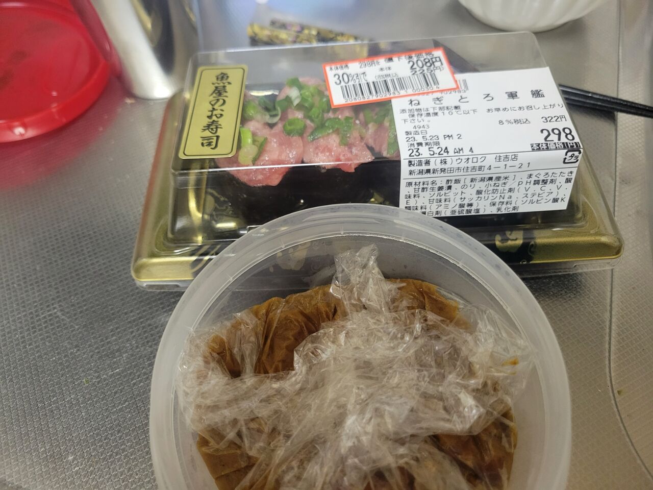 ネギトロ軍艦にマグロチョレギサラダ。