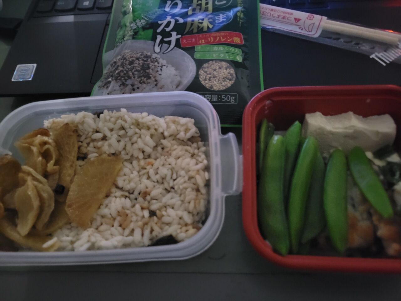 昼ごはんは自然解凍混ぜご飯に漬物と昨晩の豆腐グラタンの残りと