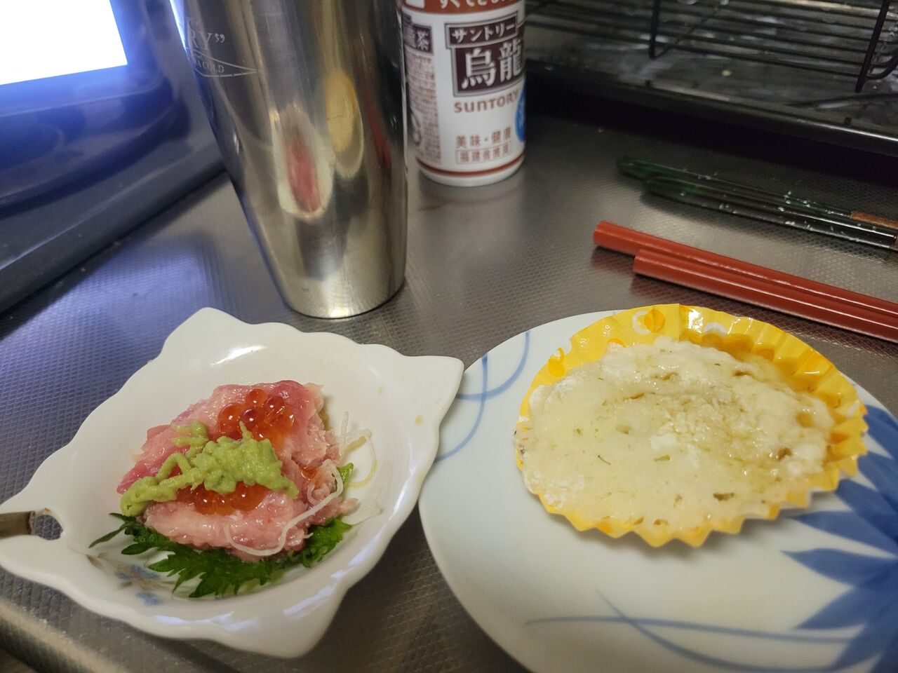 冷凍してあったとろろ芋を解凍してまぐろ山かけ