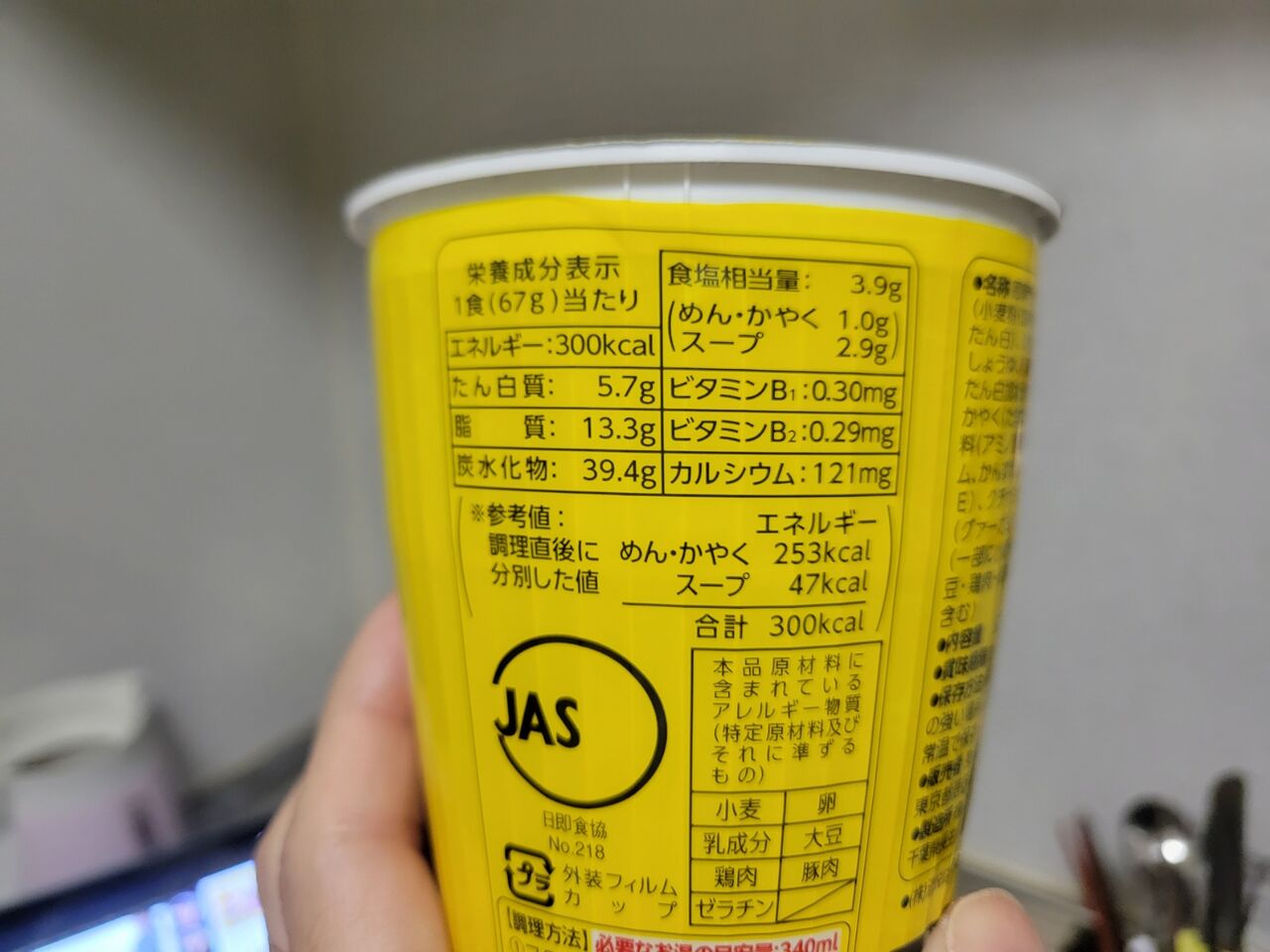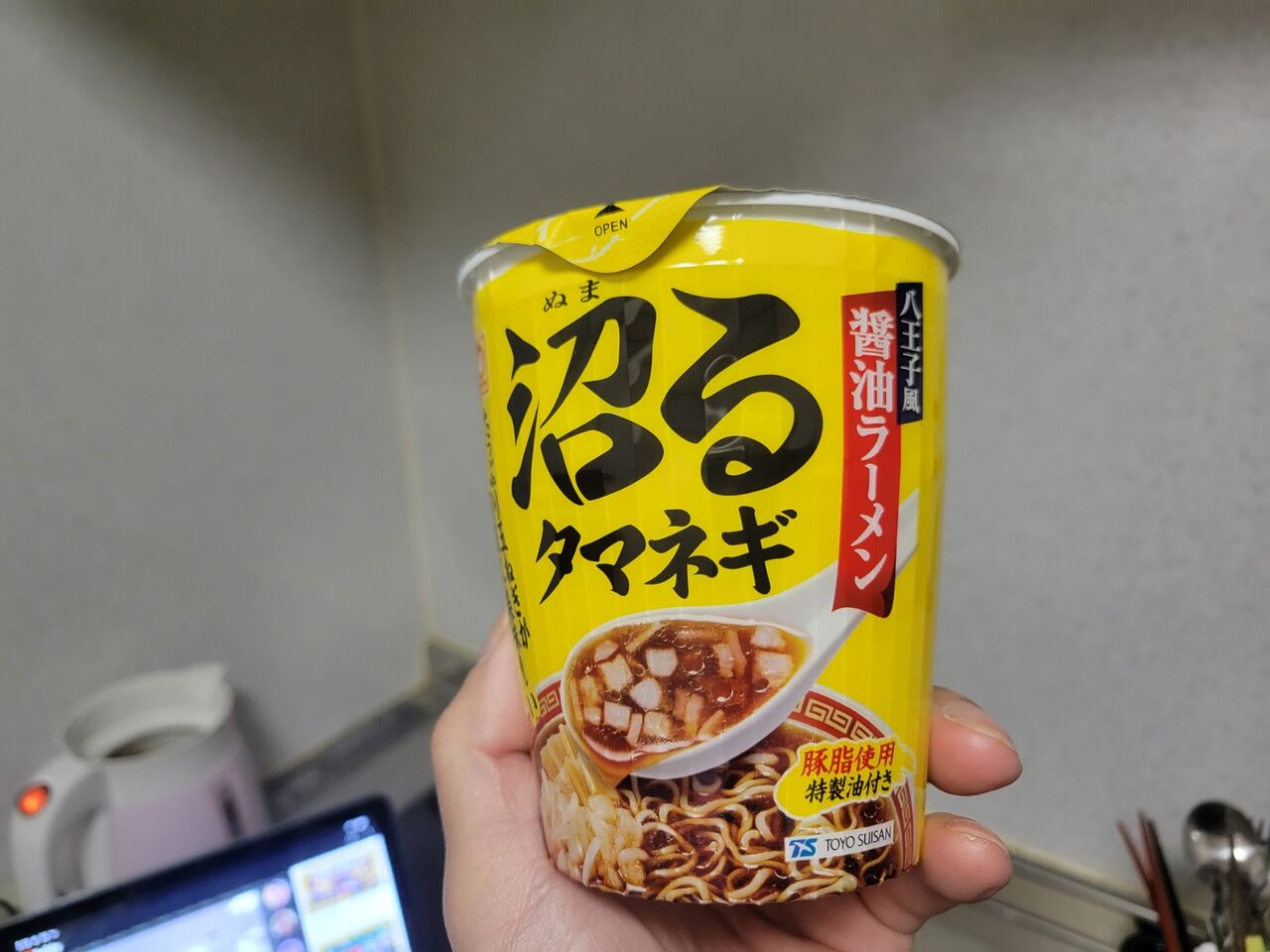 朝食はお決まりのカップ麺。