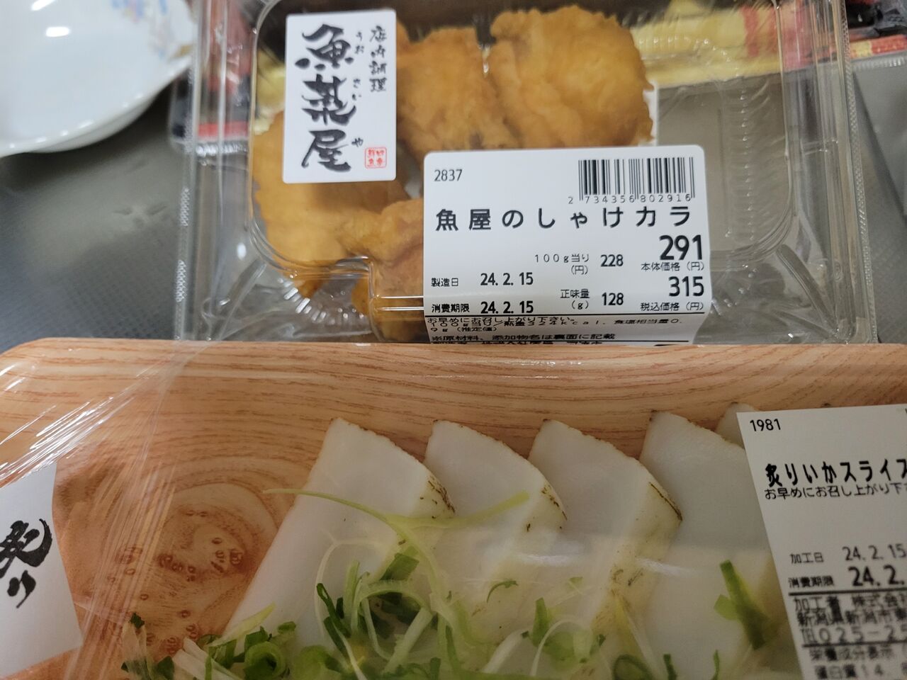 昨日の残り物でぷしゅ!鮭の唐揚げというものは初めて食べたかも。