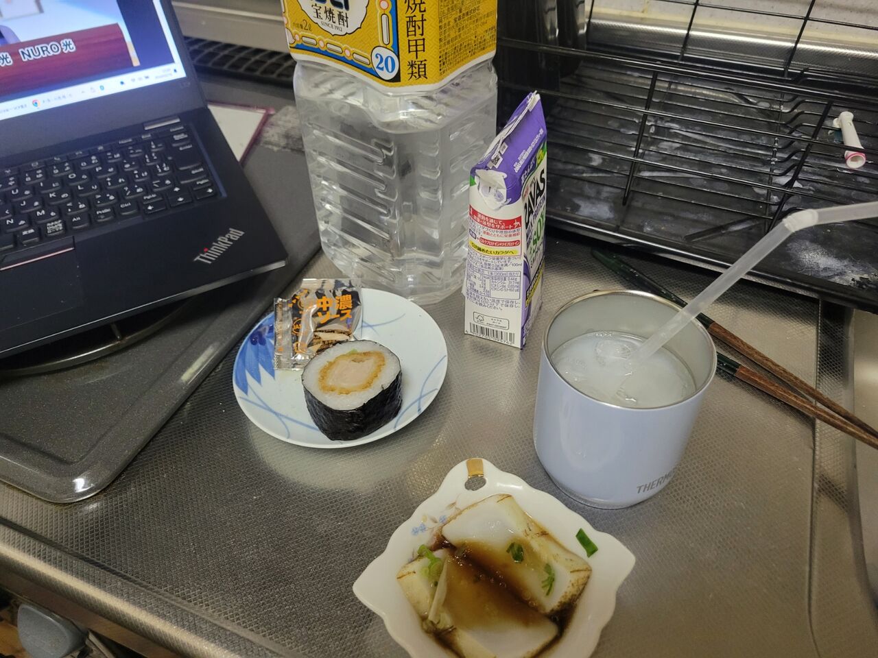 シャワー浴びて2度目の朝食は鉄火巻の残り。