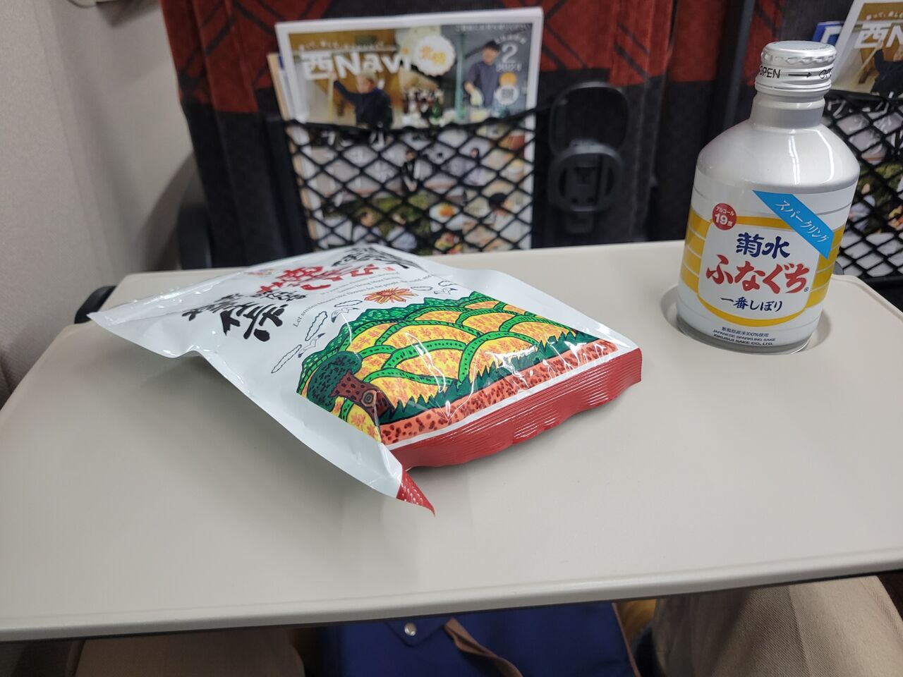 ってことで持参したふなスパとお土産用の米菓でぷしゅ!