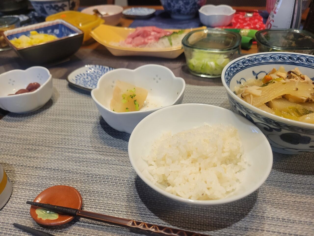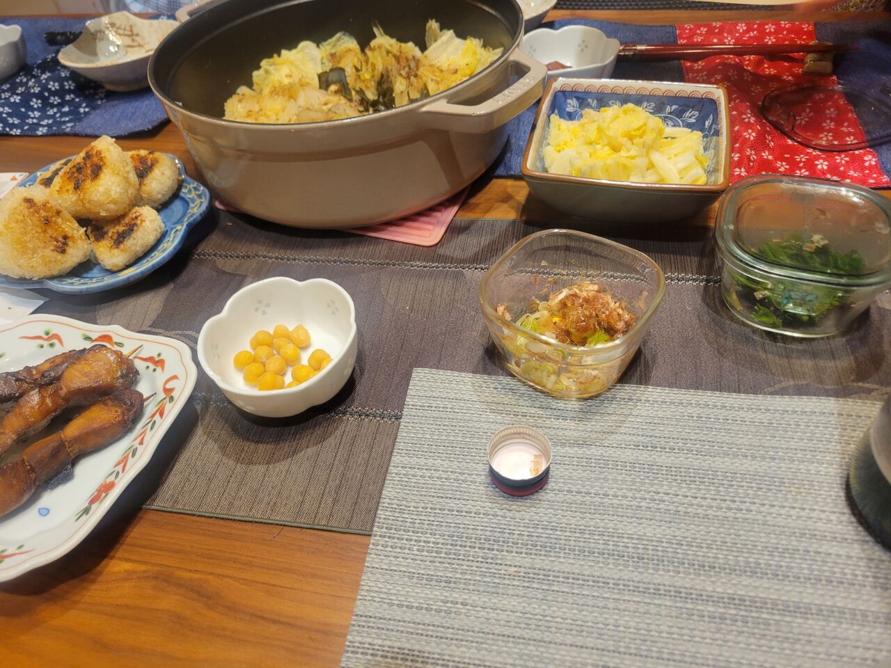 久しぶりに足伸ばして風呂入って晩御飯は豚バラミルフィーユ鍋に焼きおにぎり