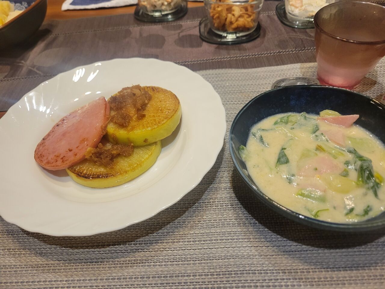 風呂入って晩御飯は大根ステーキに白菜クリーム煮。