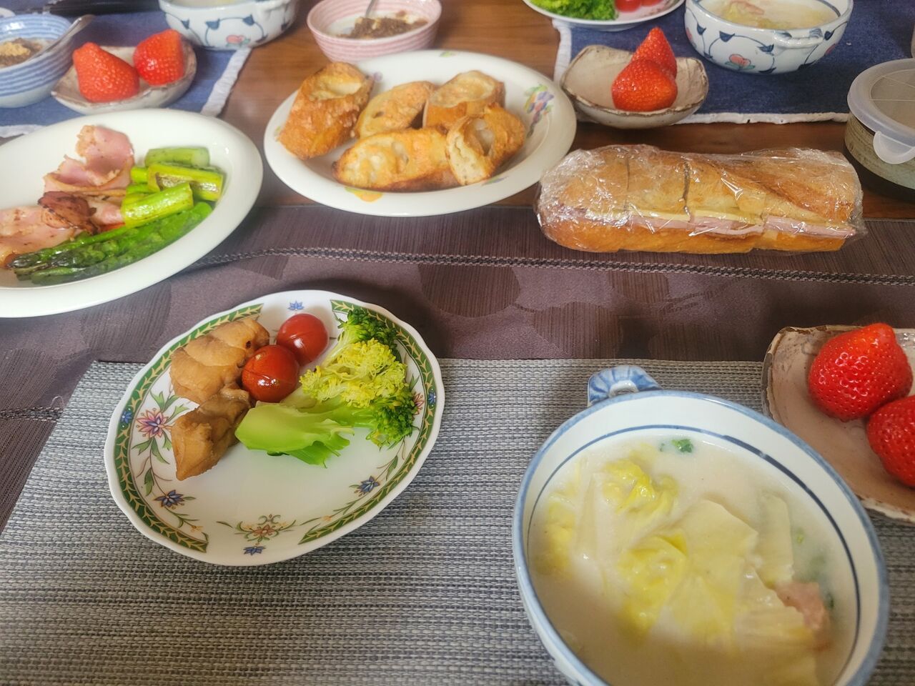 昨日買ってきたVIRONのバゲットで人権のある朝食