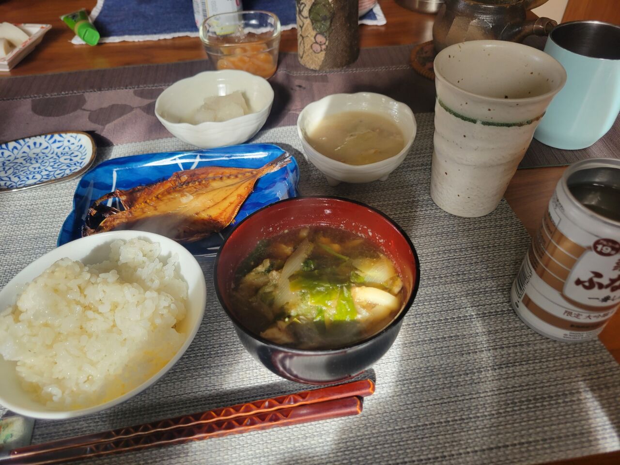 からの白米味噌汁焼き魚で朝食からぷしゅ!