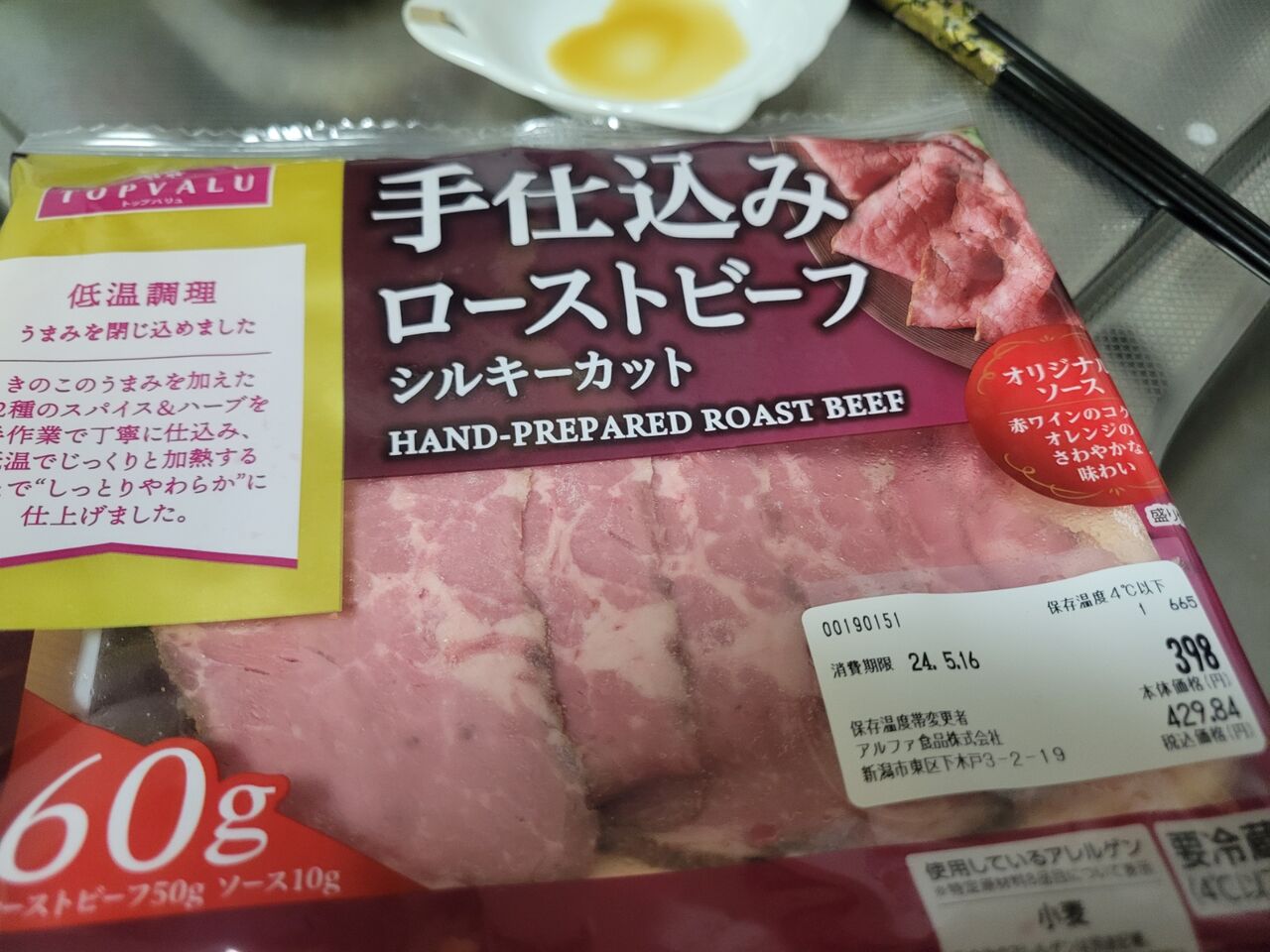 ローストビーフ。脂肪部分は切除。