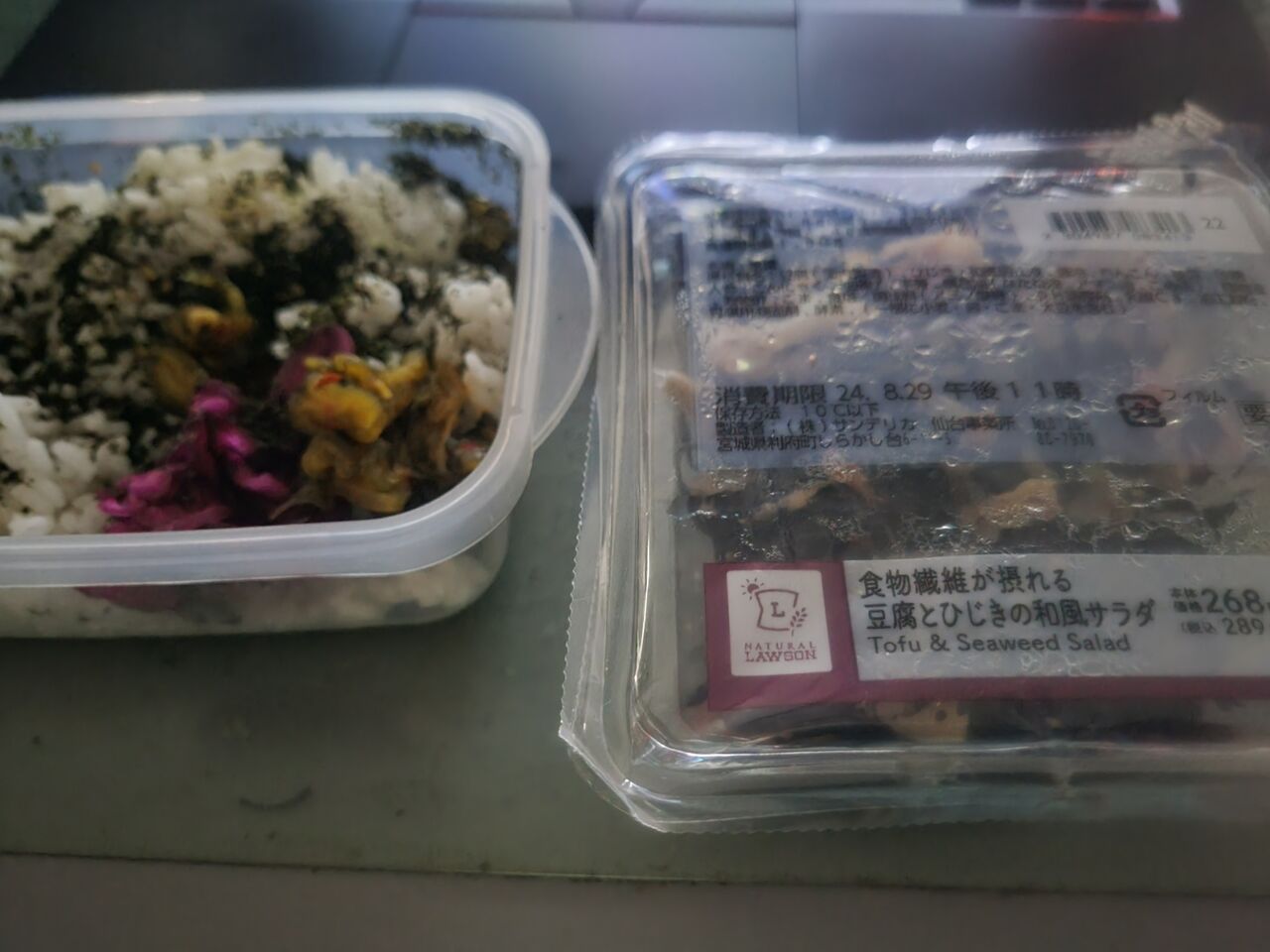 昼ご飯は自家製しそふりかけご飯に漬物とコンビニ惣菜のひじき
