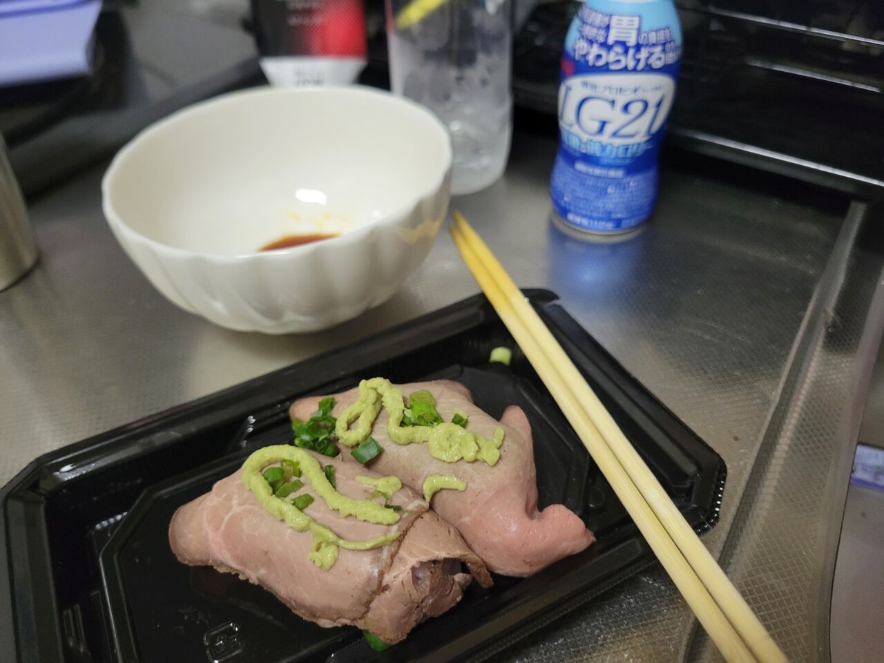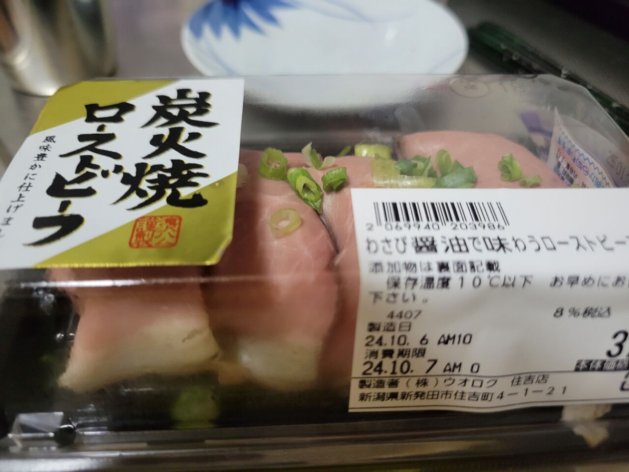 シャワー浴びて中途半端な時間だけど昼ごはん。ローストビーフ寿司