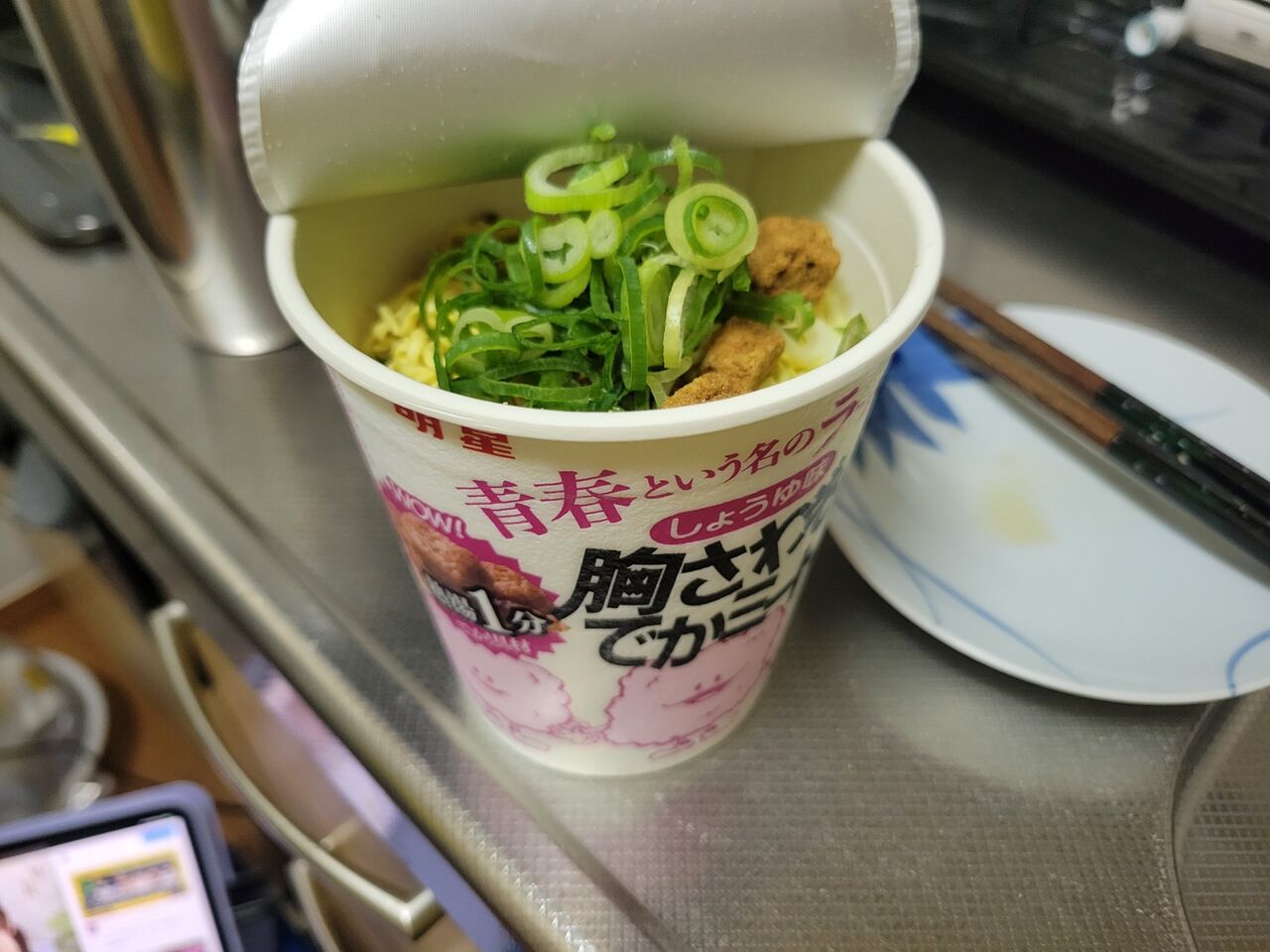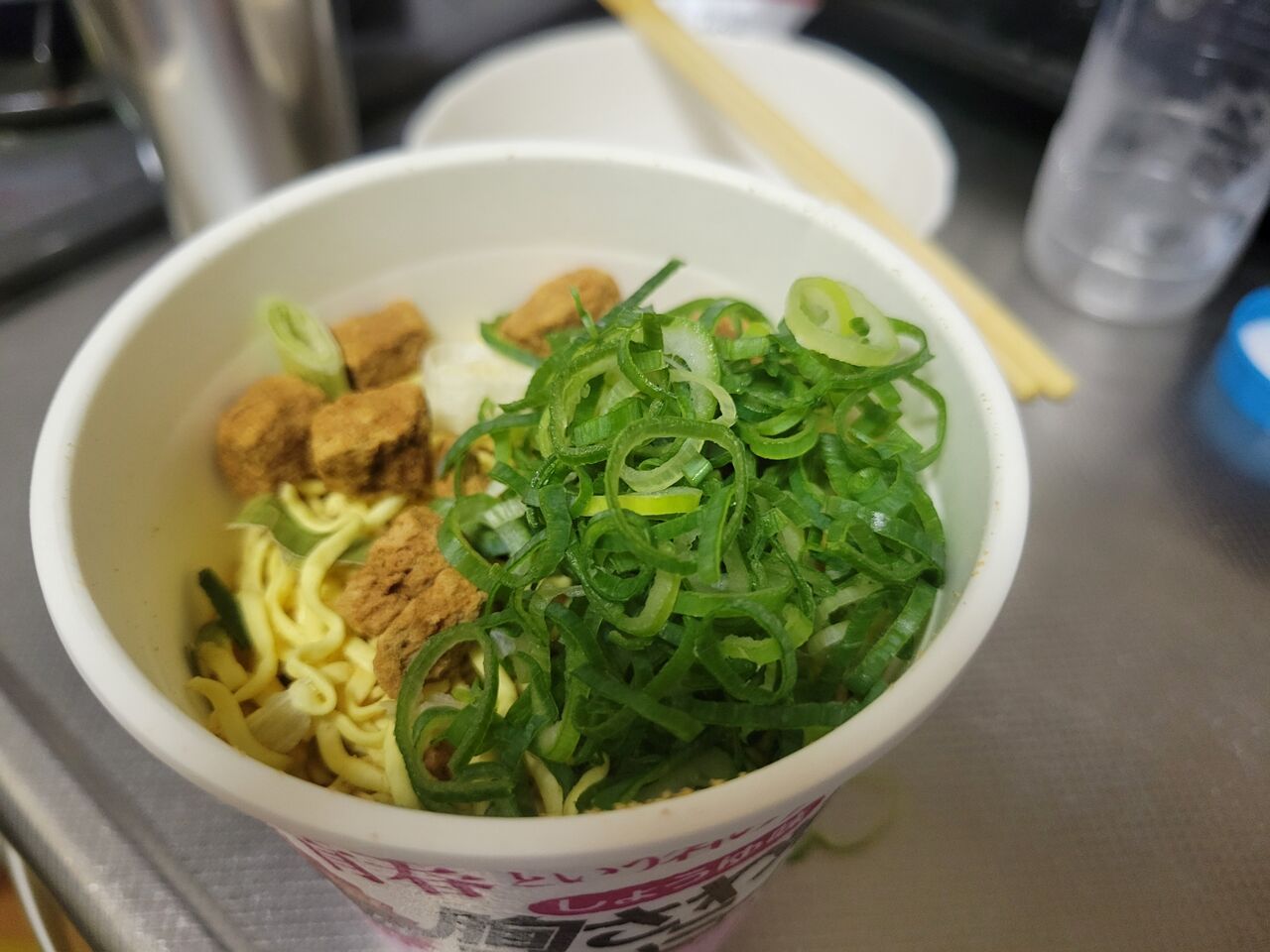 からのカップ麺カットねぎ追加で。