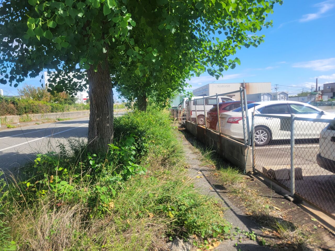 田舎の歩道あるあるで草が生い茂っていて通れない。