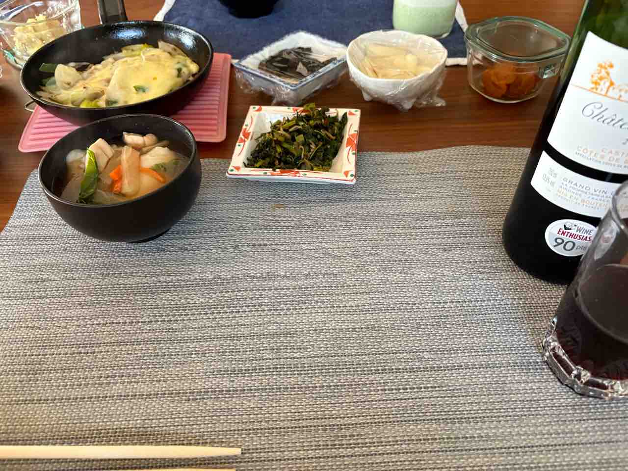 シャワー浴びて朝食。おせちの残りとか湯豆腐。