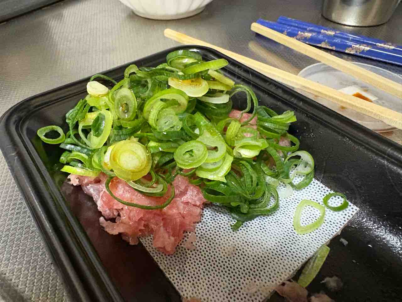 シャワー浴びて洗濯しつつ晩ごはんの続きでねぎとろに