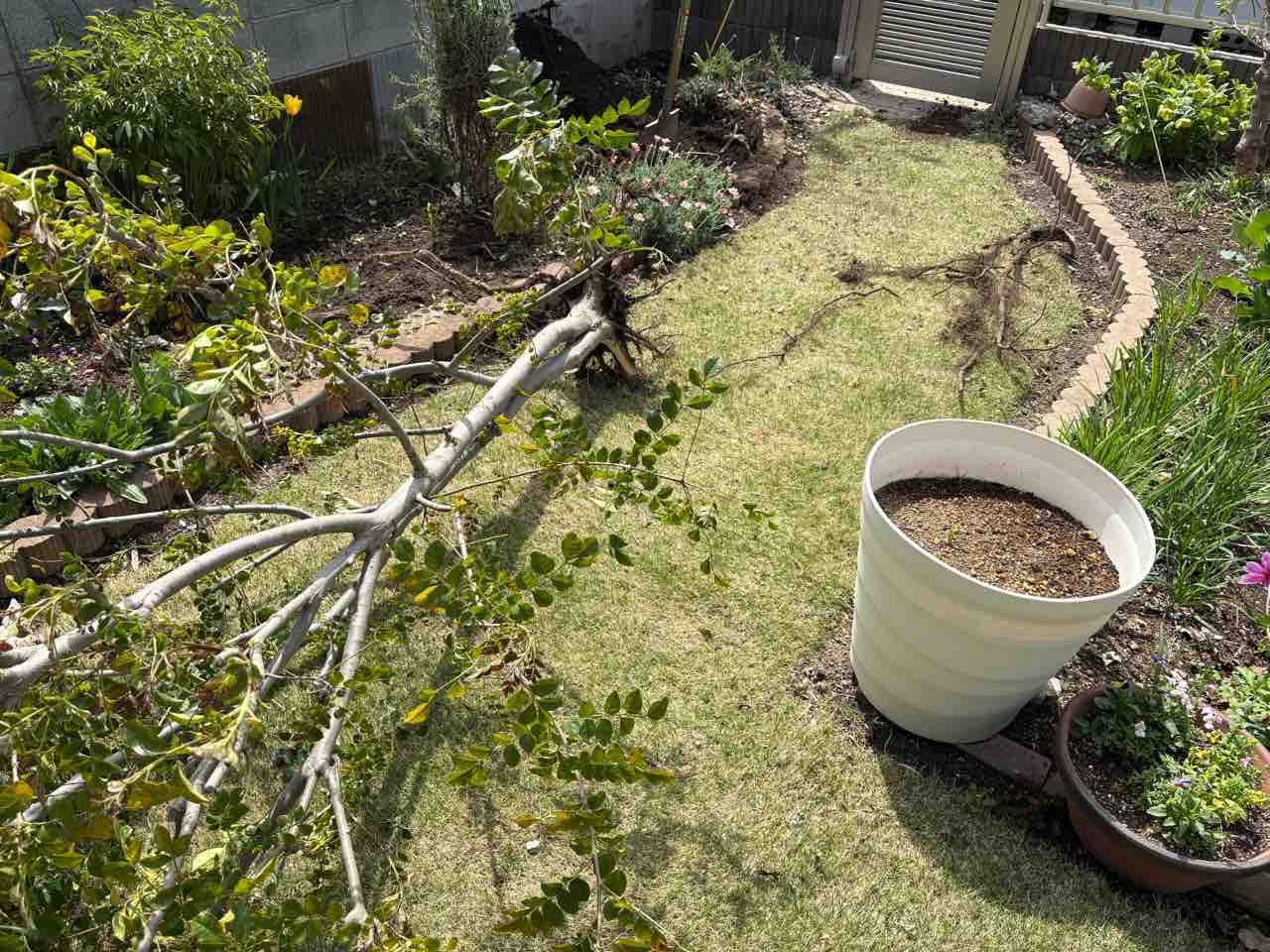 洗い物して、なんか庭の木を植え替えたいらしくひっこぬく司令がくだされる。
