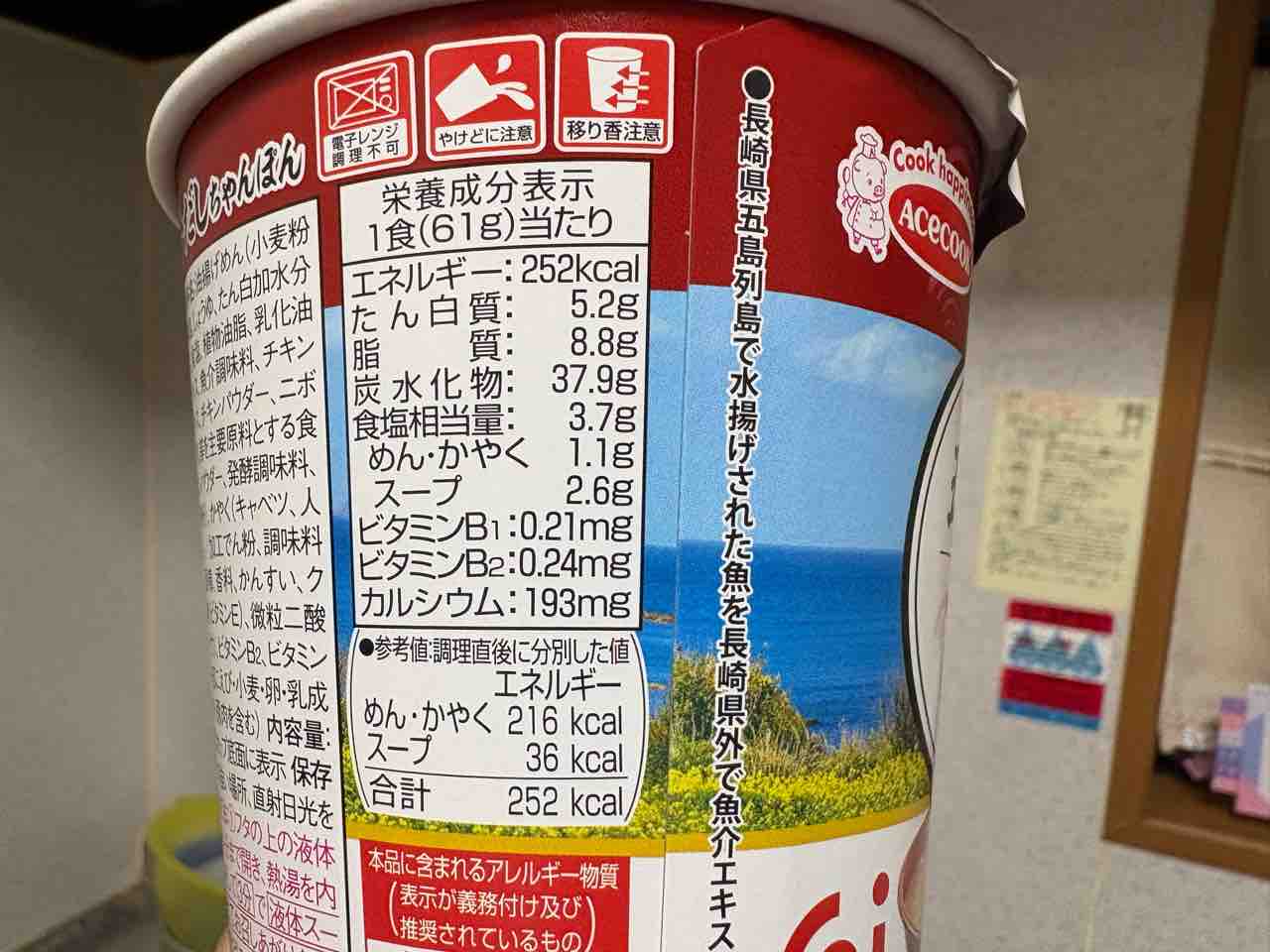 朝食はお決まりのカップ麺。