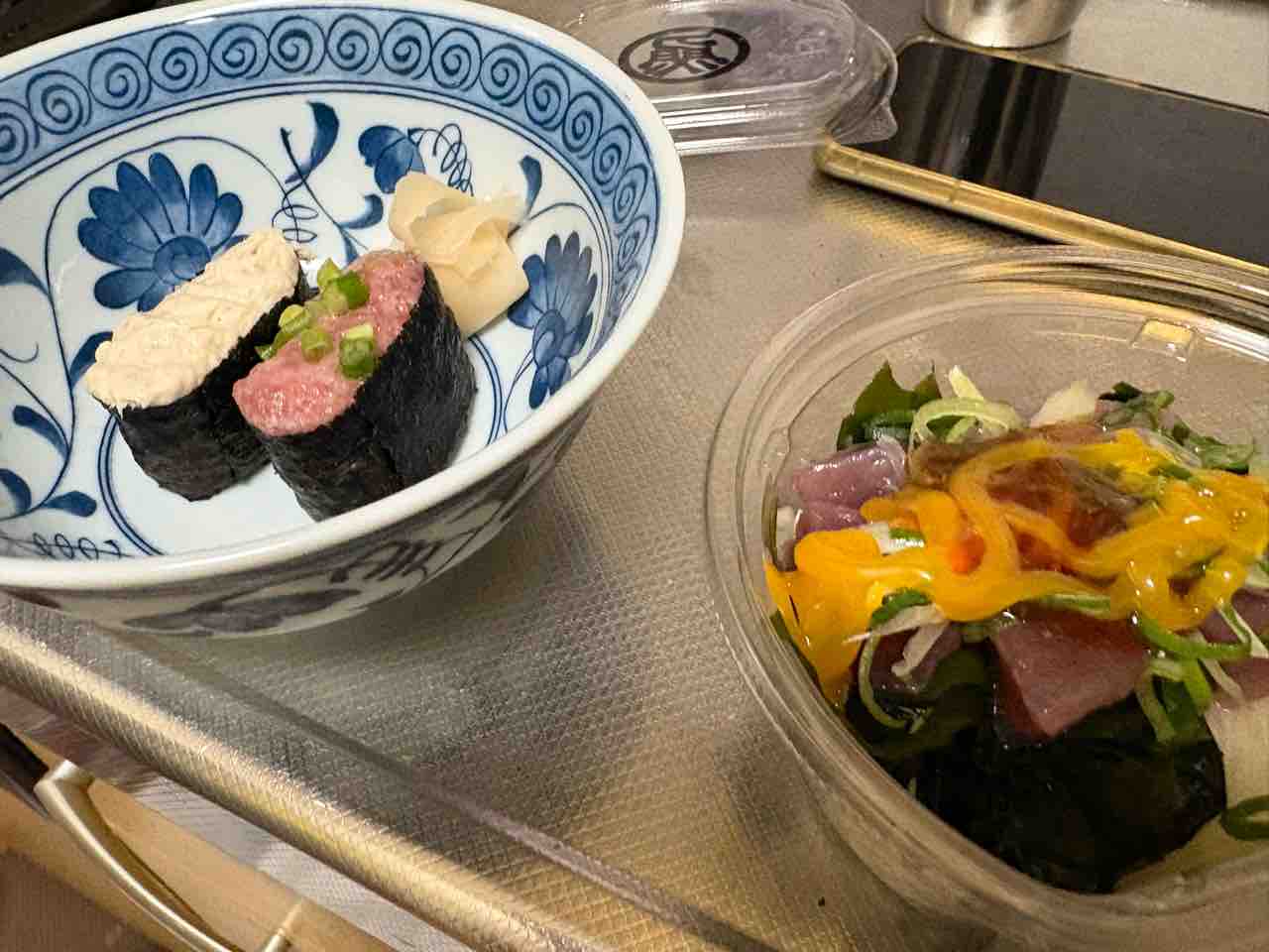晩ごはんは寿司の残りと消費期限切れまぐろユッケ