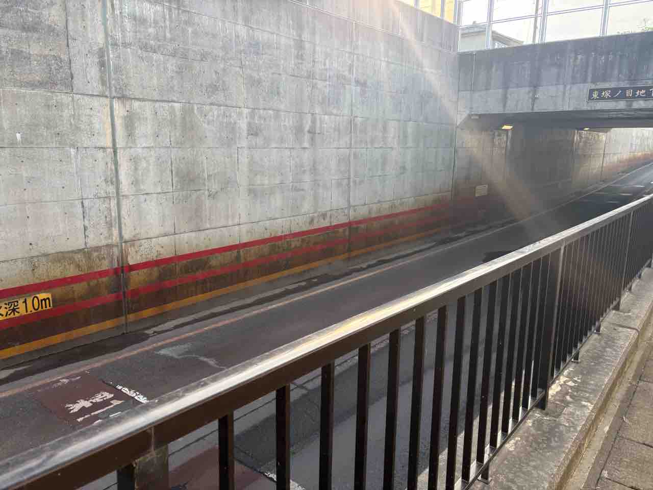 先日なんか車が水没したところ。ぶっちゃけ豪雨でここに突っ込むのアホやろ。