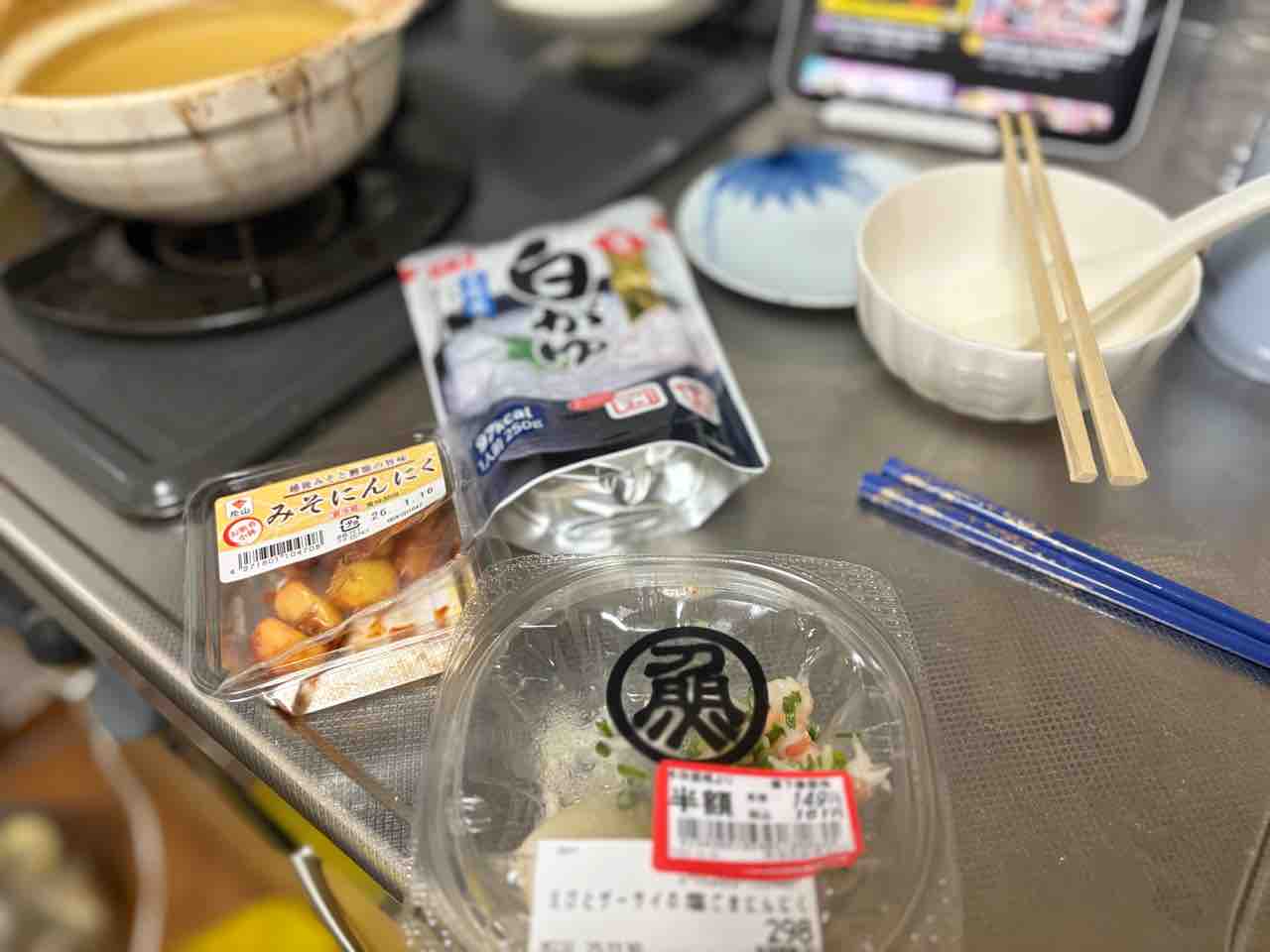 晩ご飯は明日群馬に帰るし冷蔵庫のもの整理と体調怪しいのでにんにく食べとく。