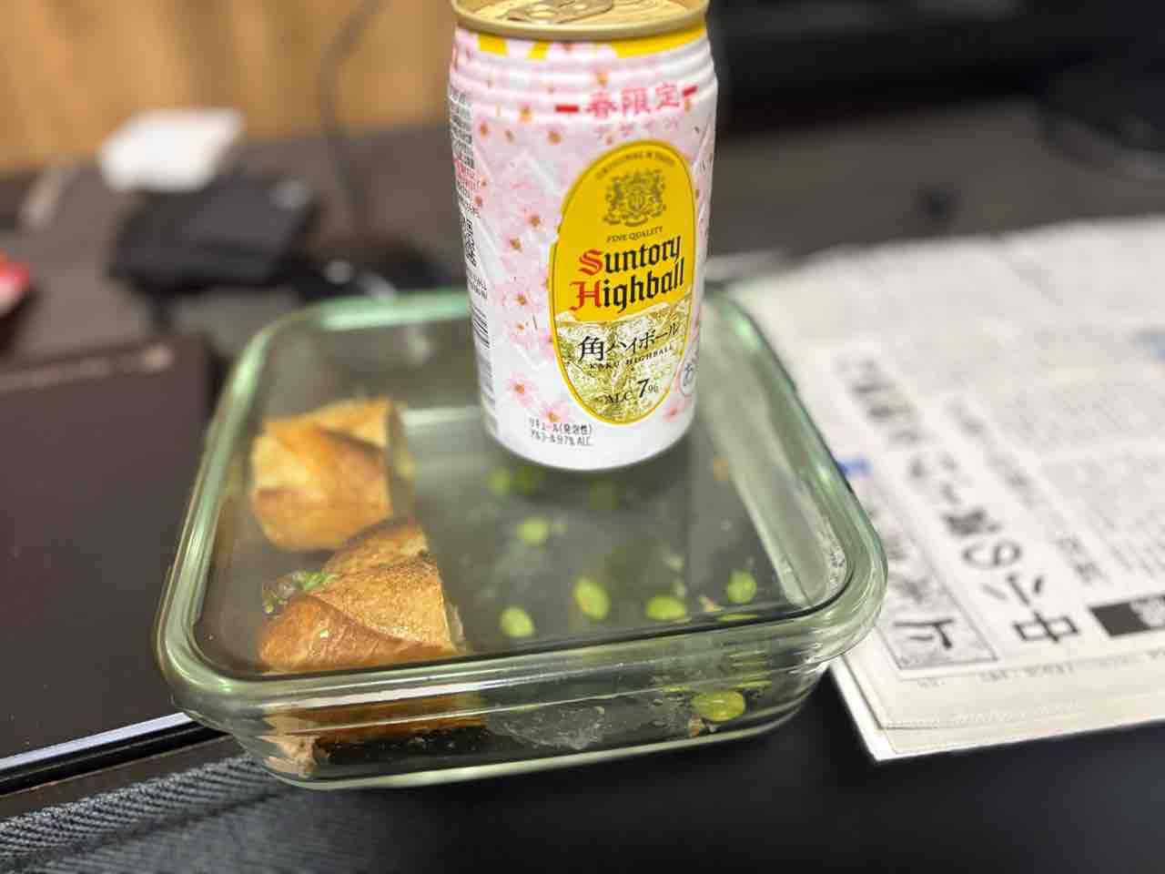 ってことでバゲットサンドの残りでハイボールキメておく