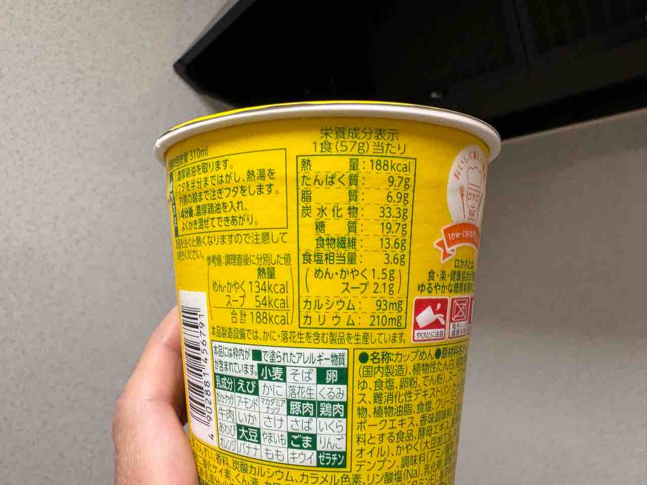 朝食はお決まりのカップ麺。明日が賞味期限。