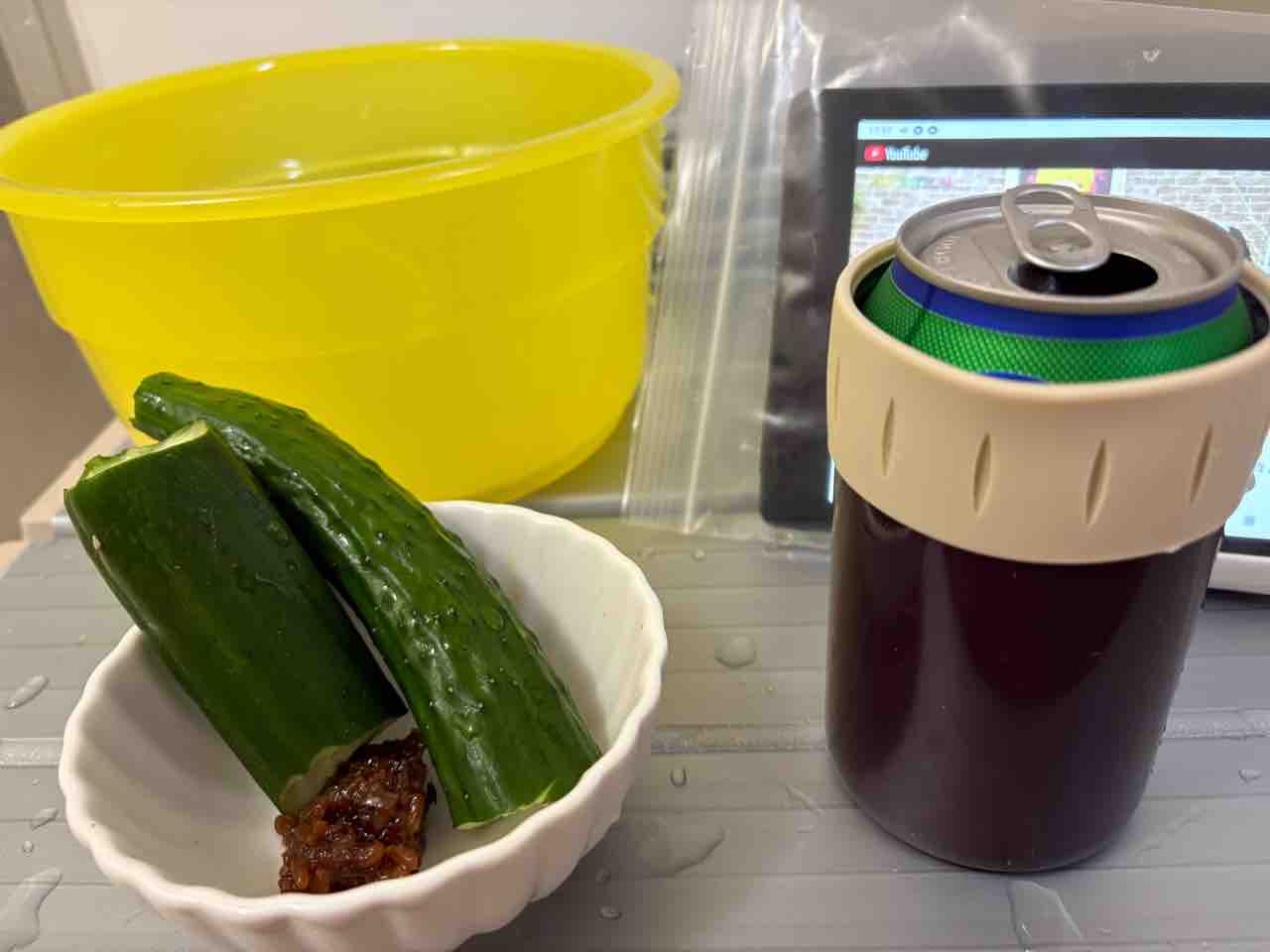 久しぶりの風呂酒(ノンアルだけど)もろきゅう。