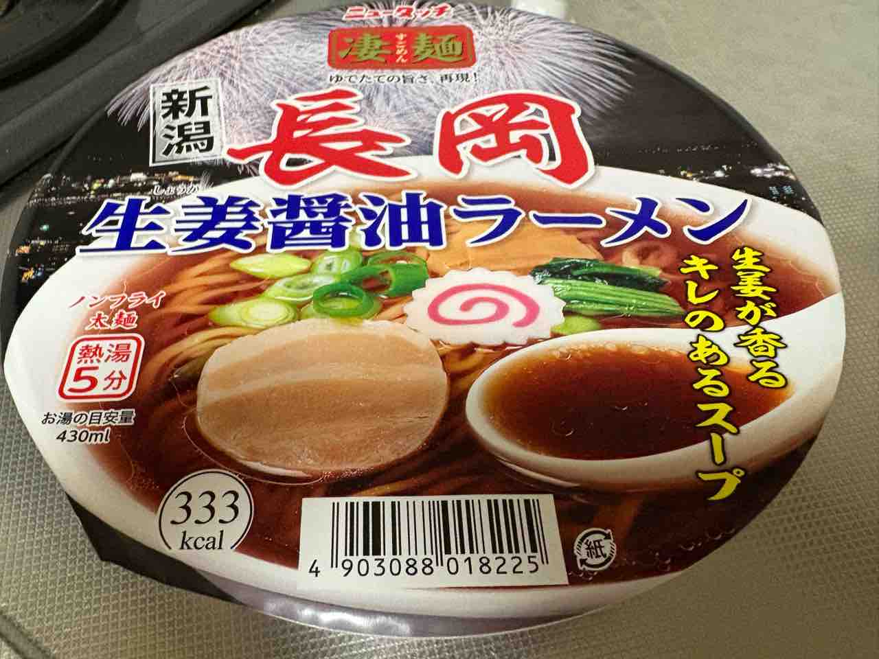 朝食は新発売の長岡生姜醤油ラーメン