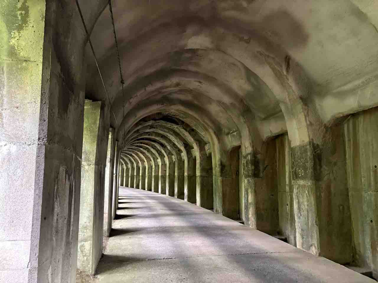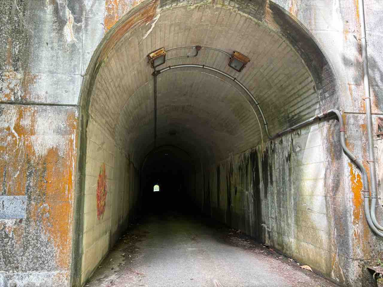 赤谷連続洞門。天井は蒸気機関車の煤らしい。