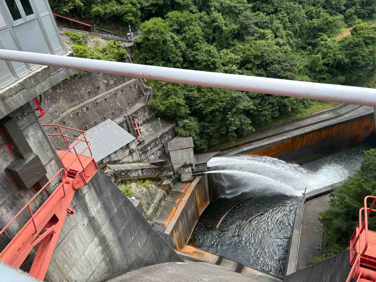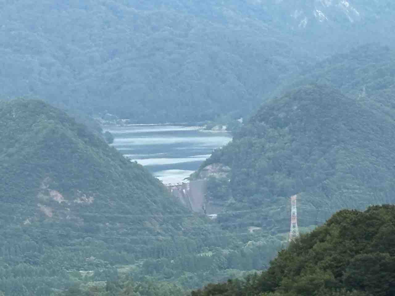 さっき立ち寄った内の倉ダム?加治川治水ダム?が見える。